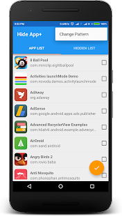 2- قم بفتح التطبيق وستظهر لك جميع التطبيقات الموجوده على هاتفك ، حيث يجب عليك تحديد التطبيق الذي تريد أخفاءه ومن ثم الضغط على زر صح!
